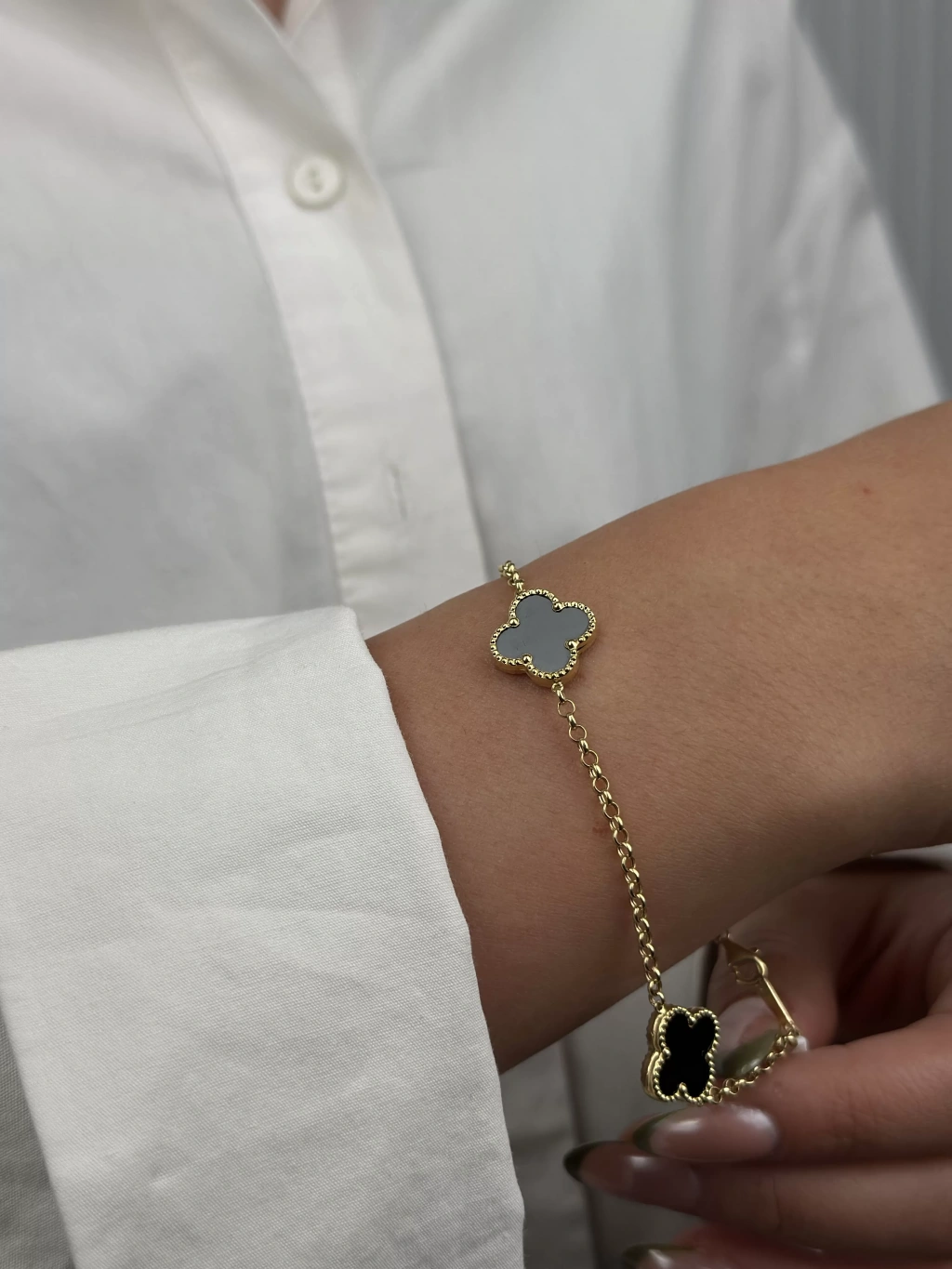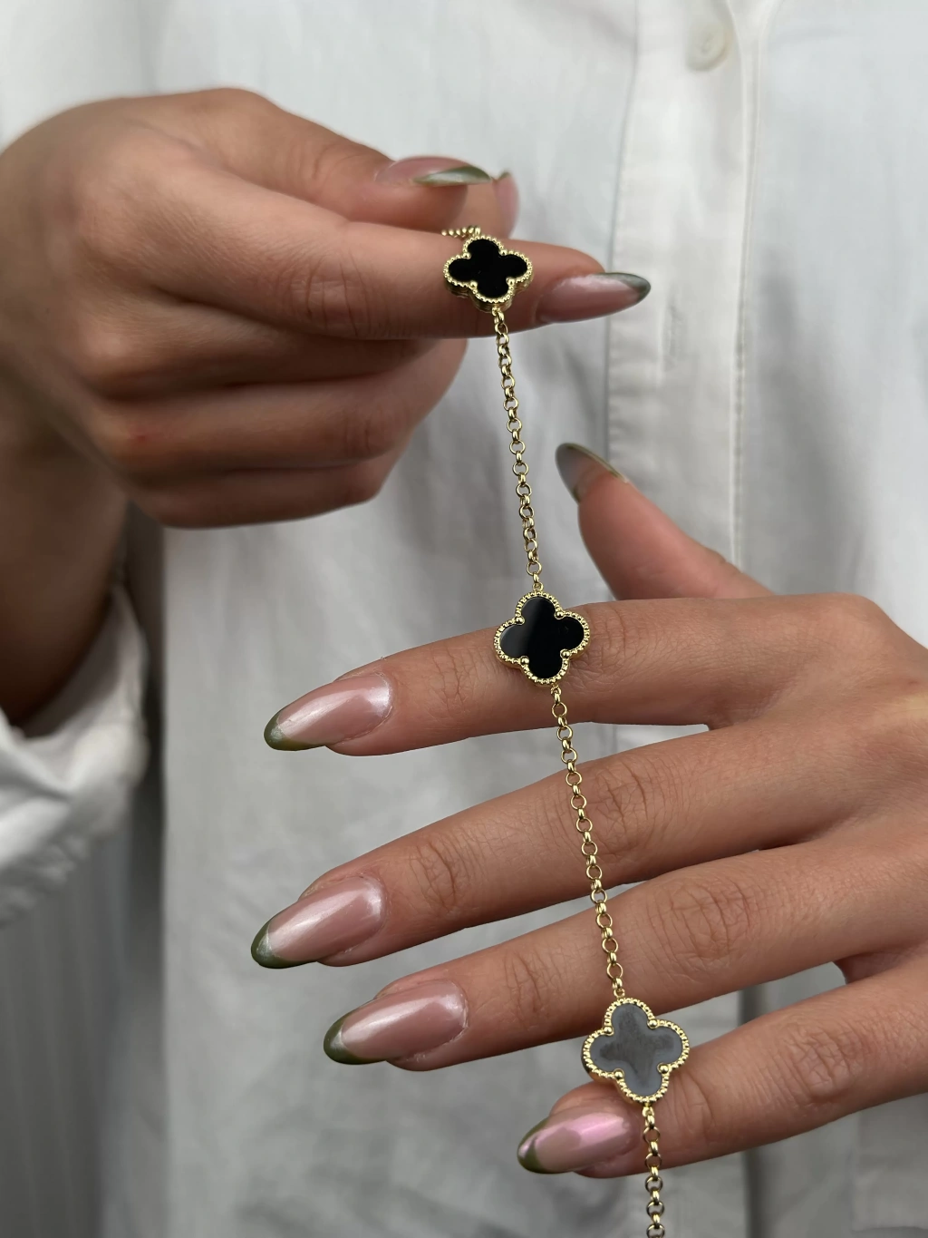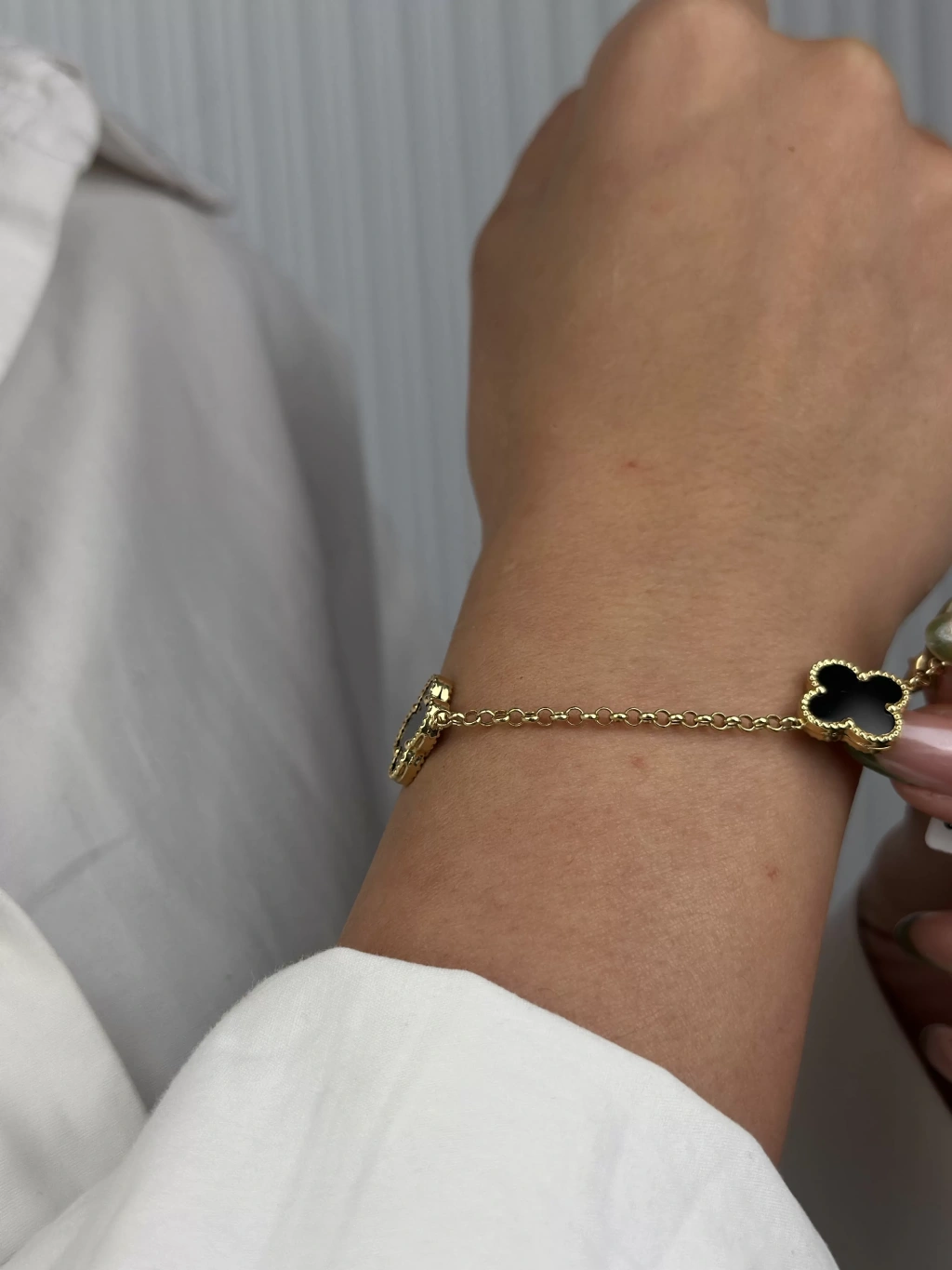 14 Ayar Altın Sİyah Yonca Bileklik 933