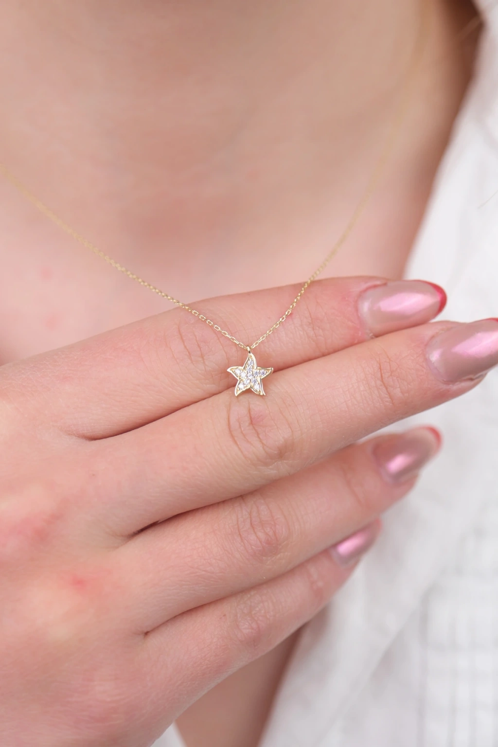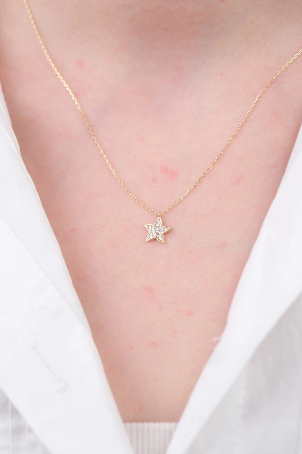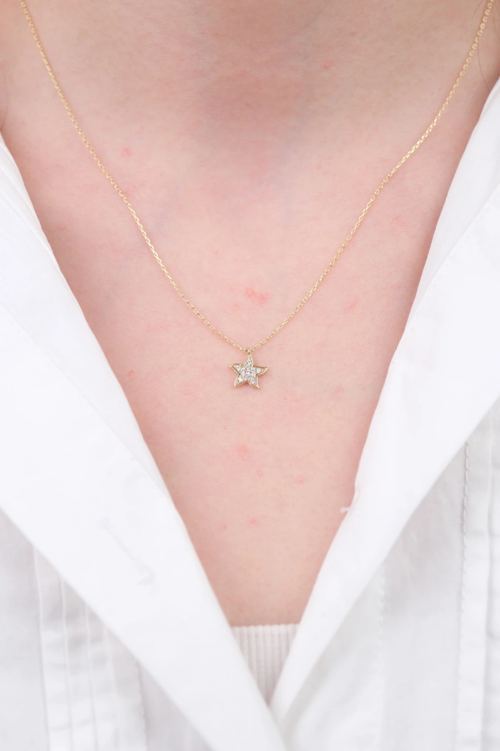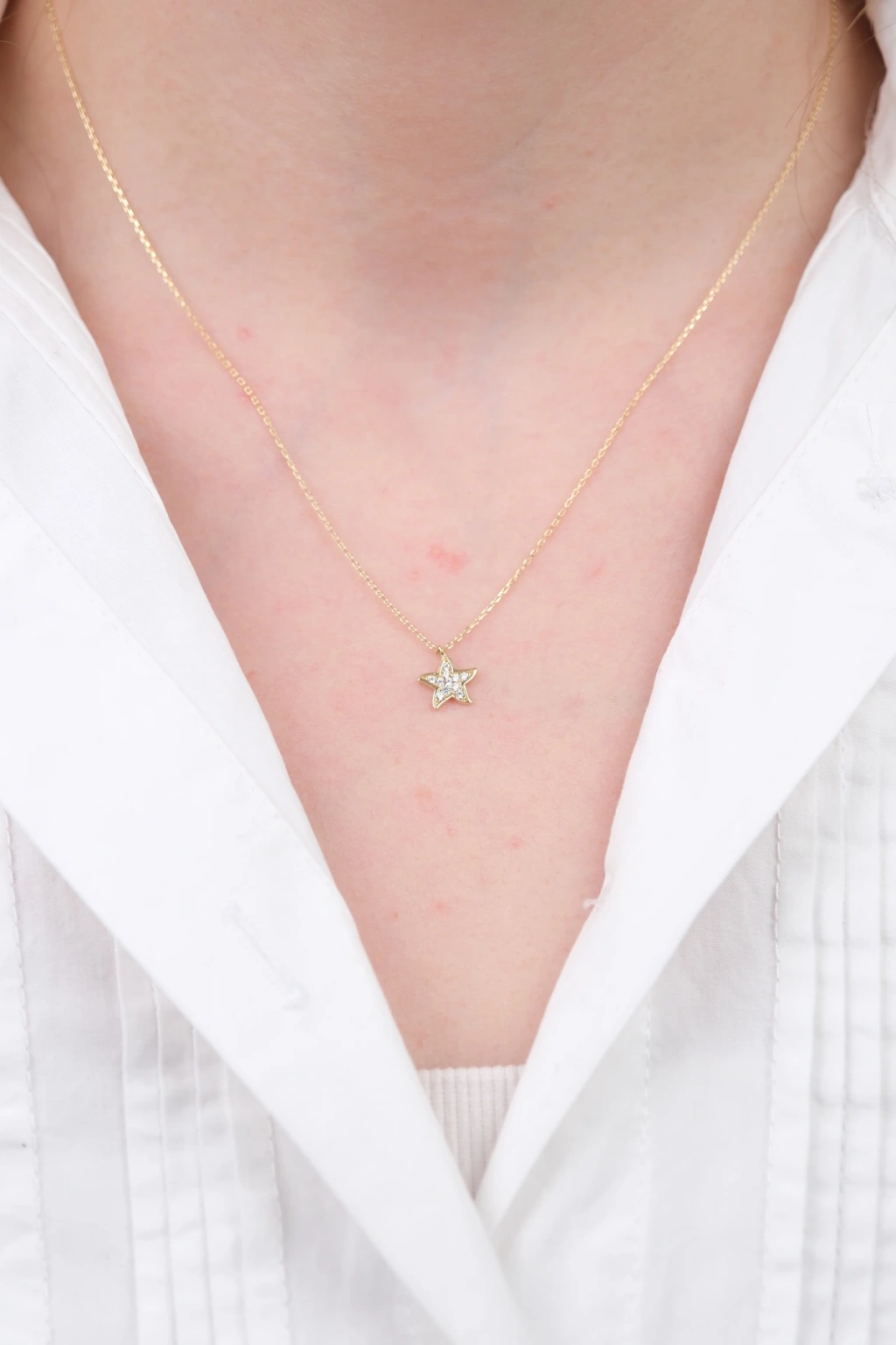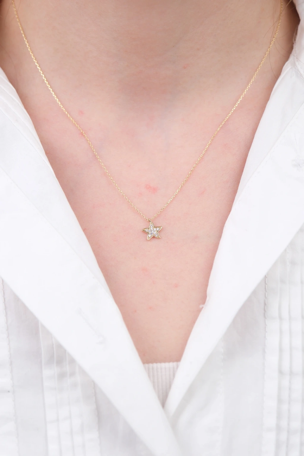 Ürün Tipi:14 Ayar Altın Taşlı Minimal Yıldız Kolye 418