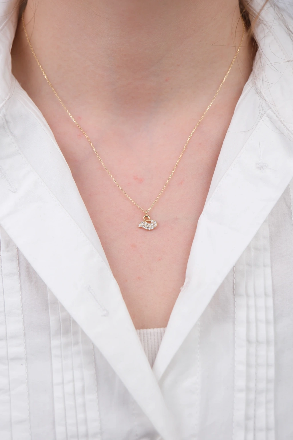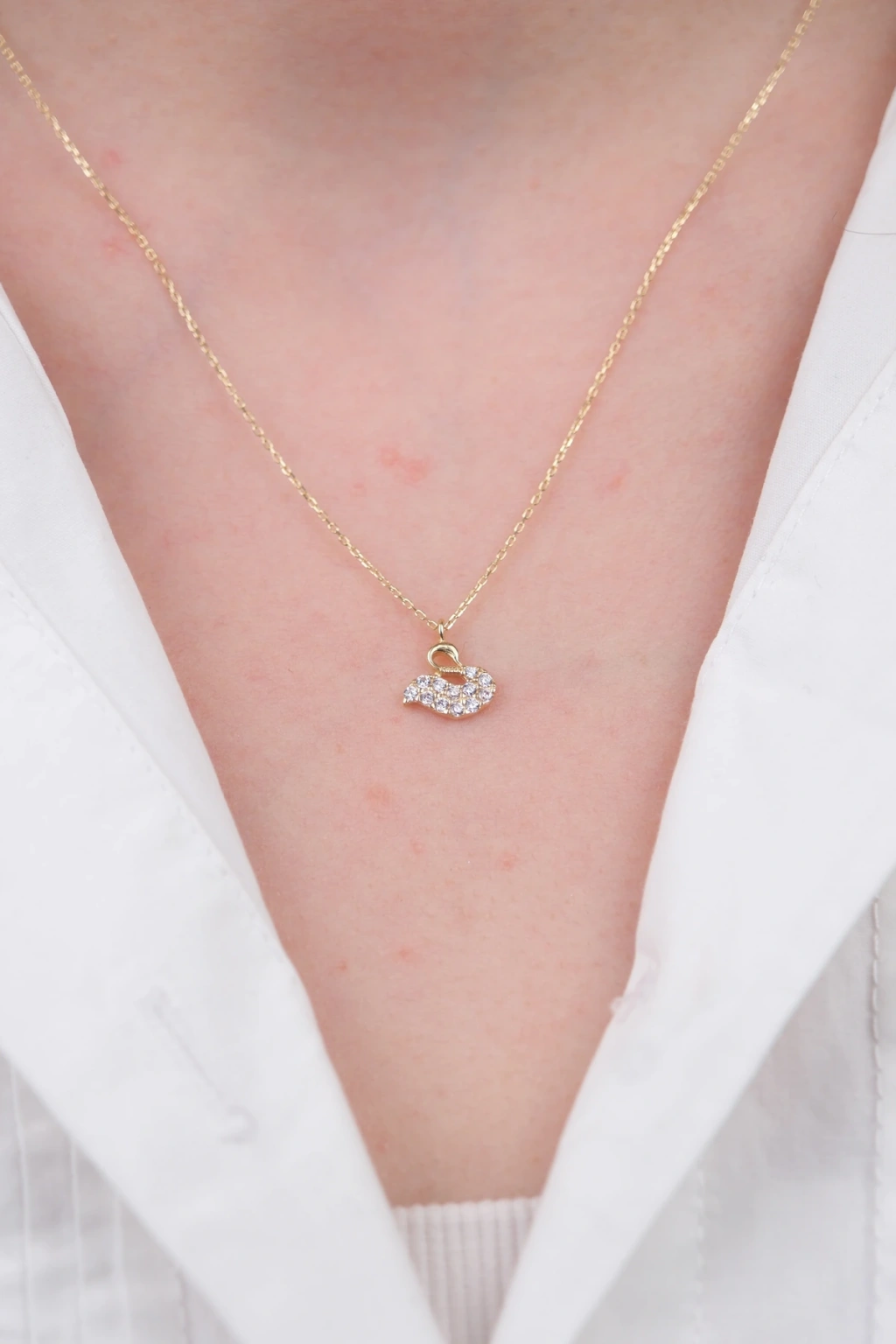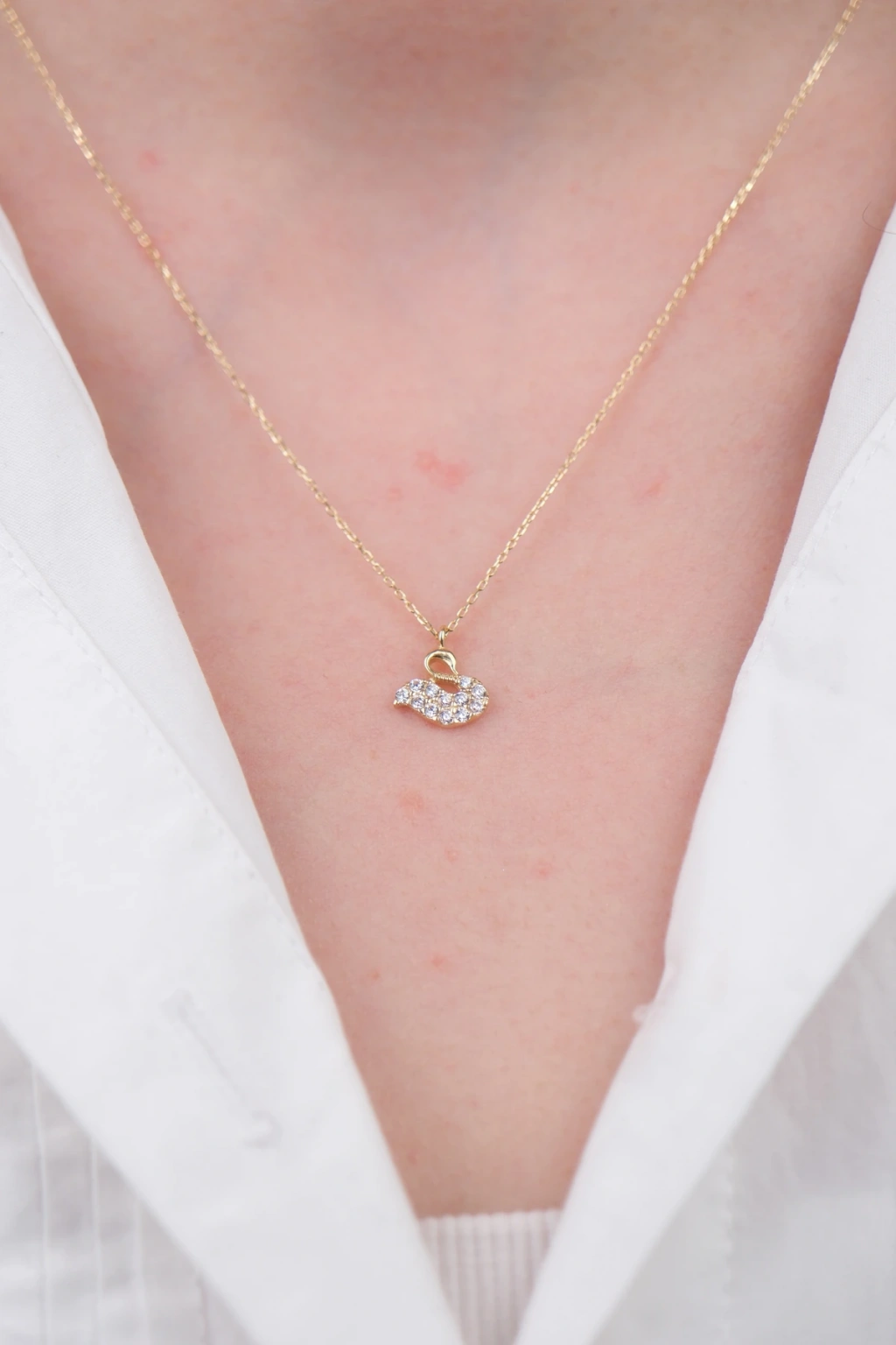 Ürün Tipi:14 Ayar Altın Taşlı Kuğu Figürlü Kolye 420