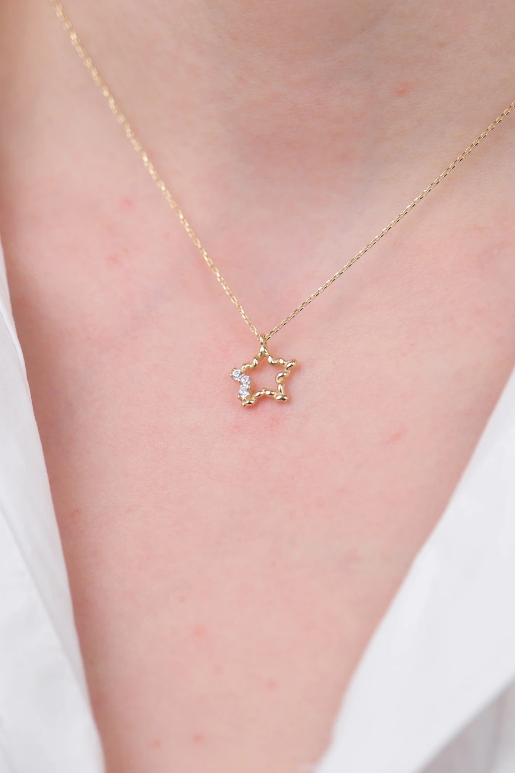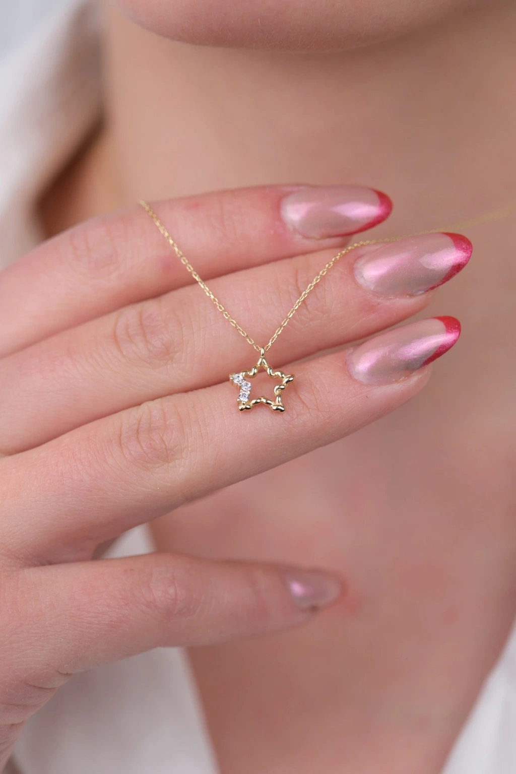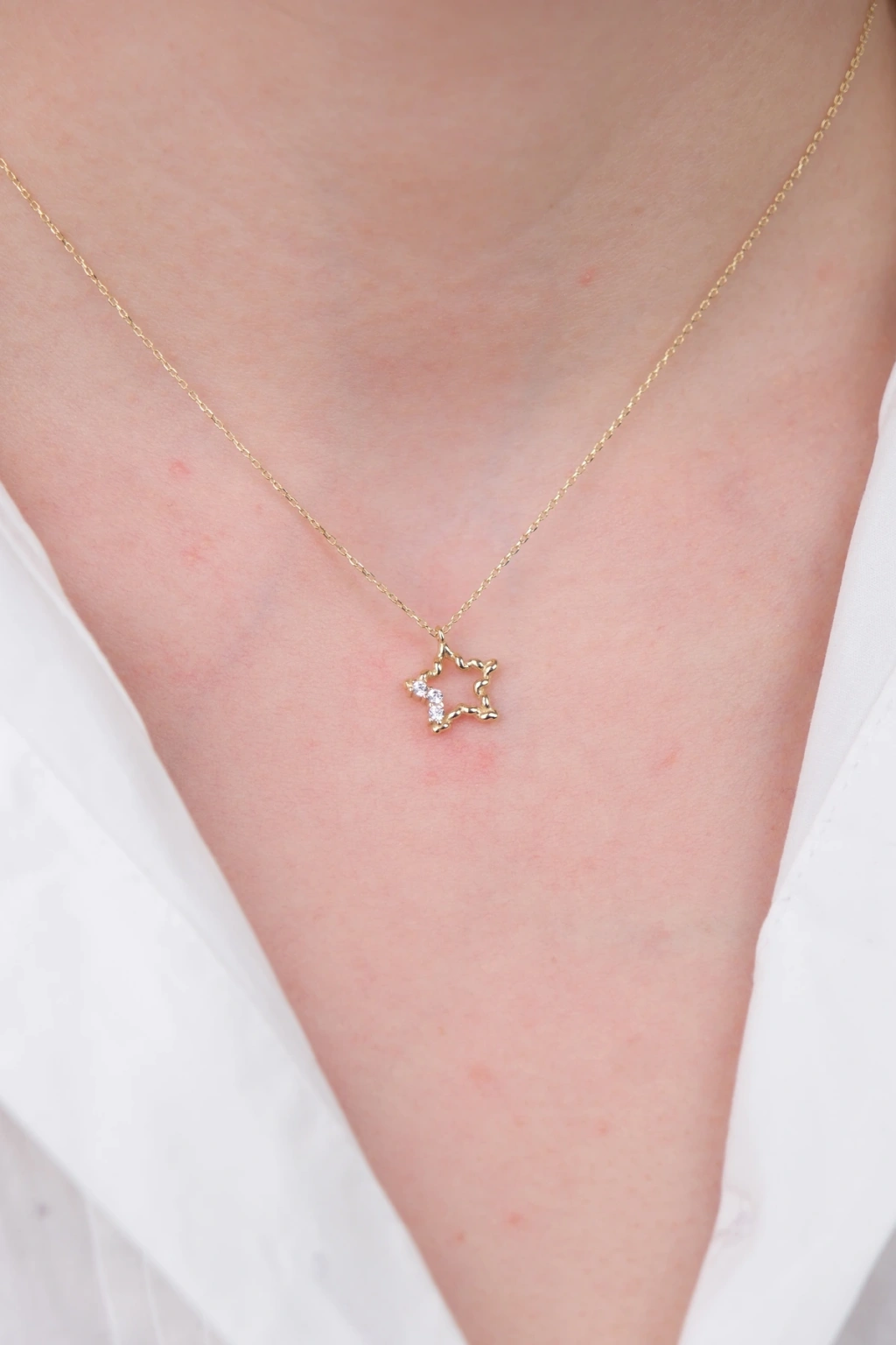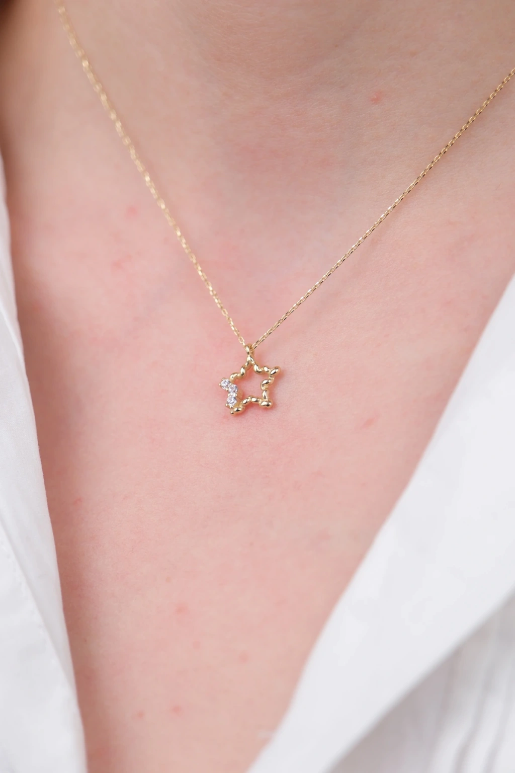 Ürün Tipi:14 Ayar Altın Minimal Taşlı Yıldız Kolye 659
