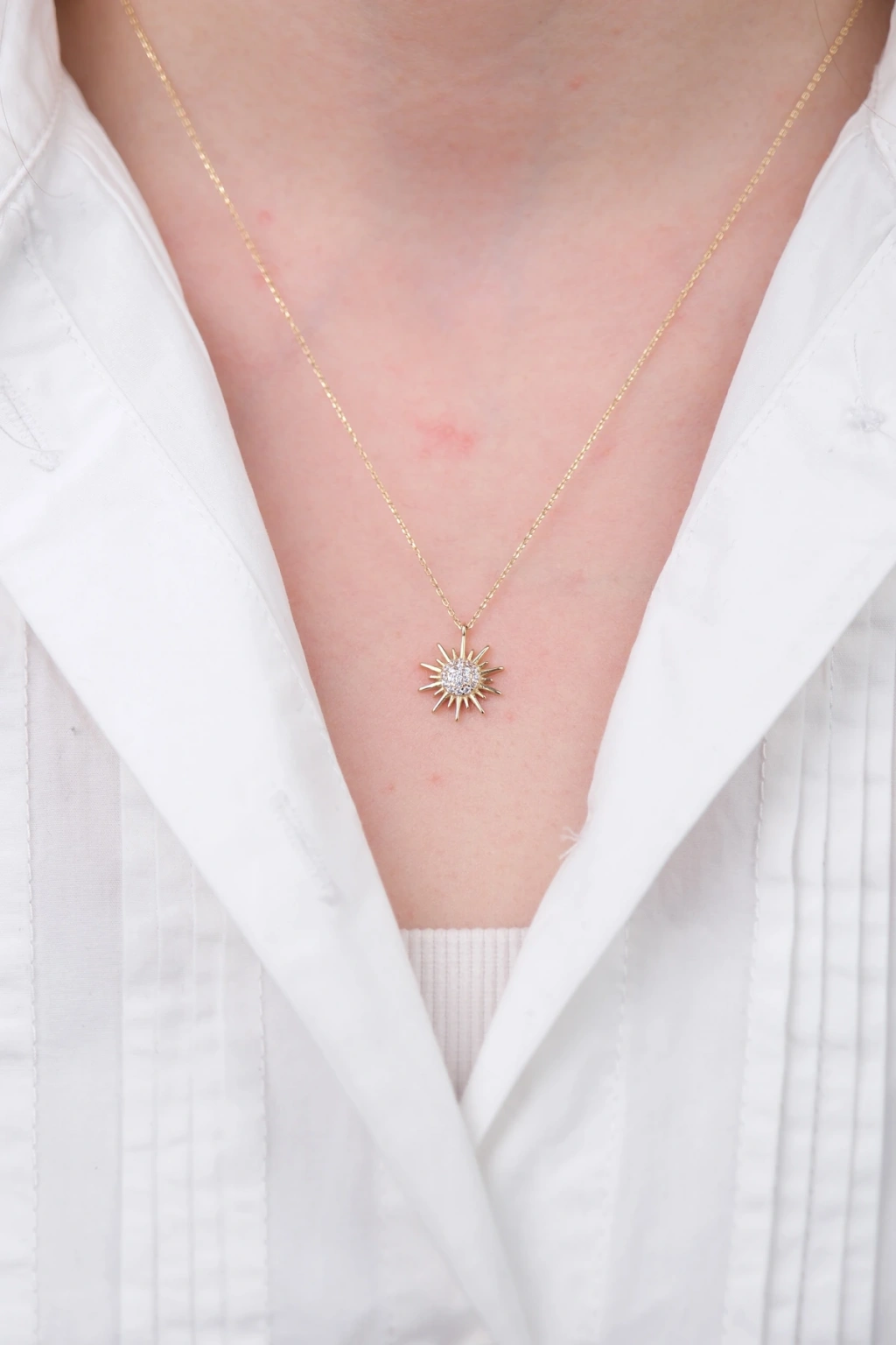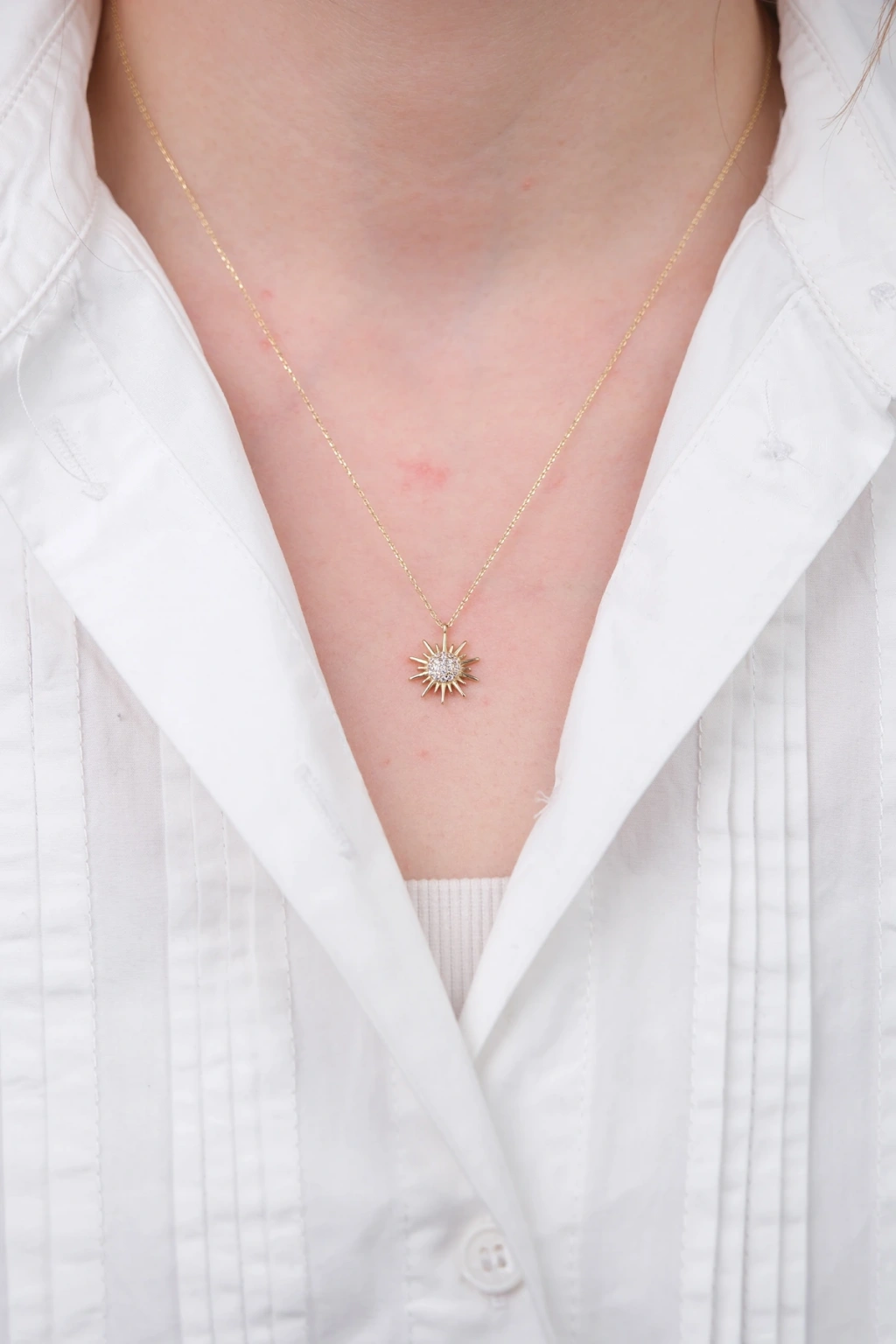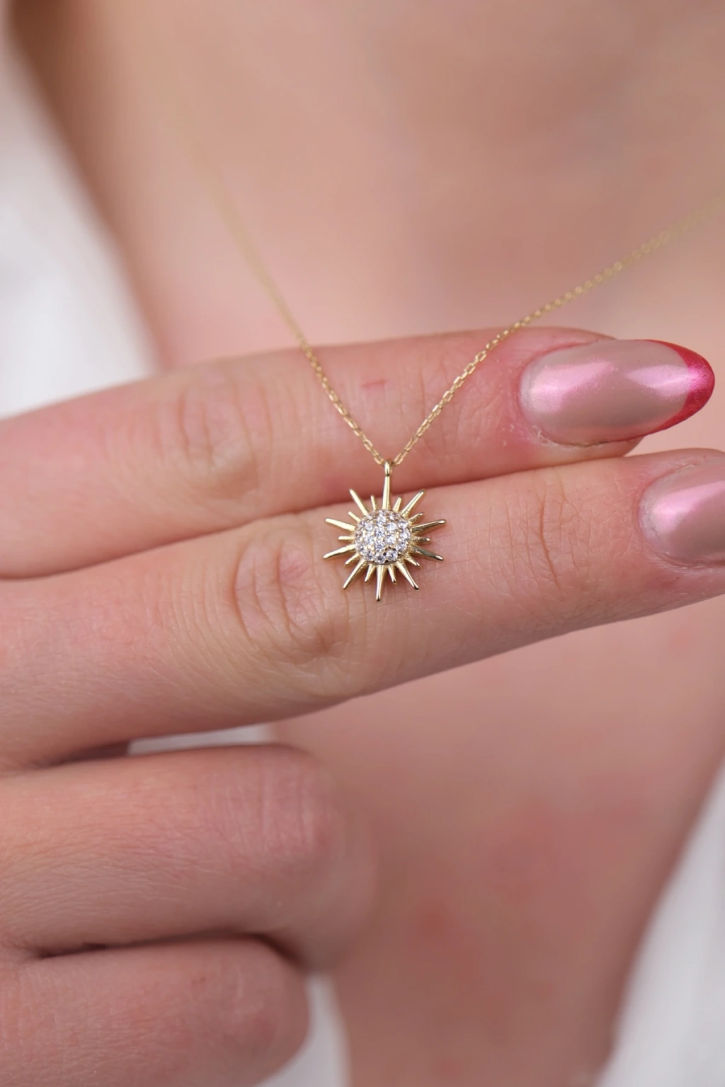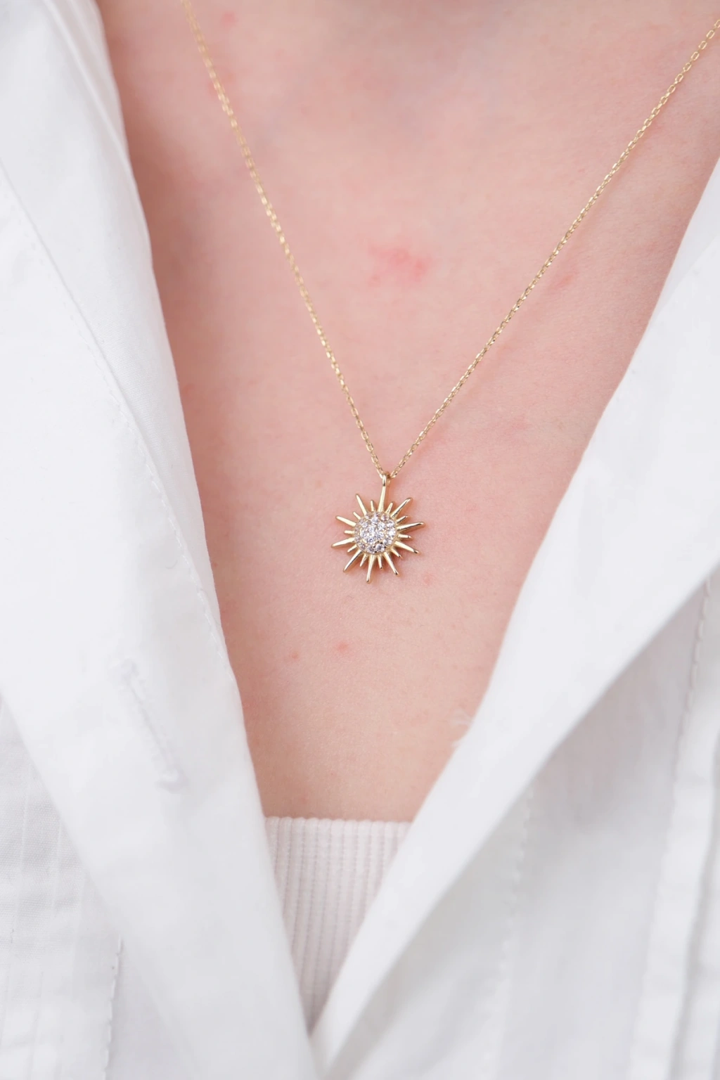 Ürün Tipi:14 Ayar Altın Taşlı Güneş Kolye 676