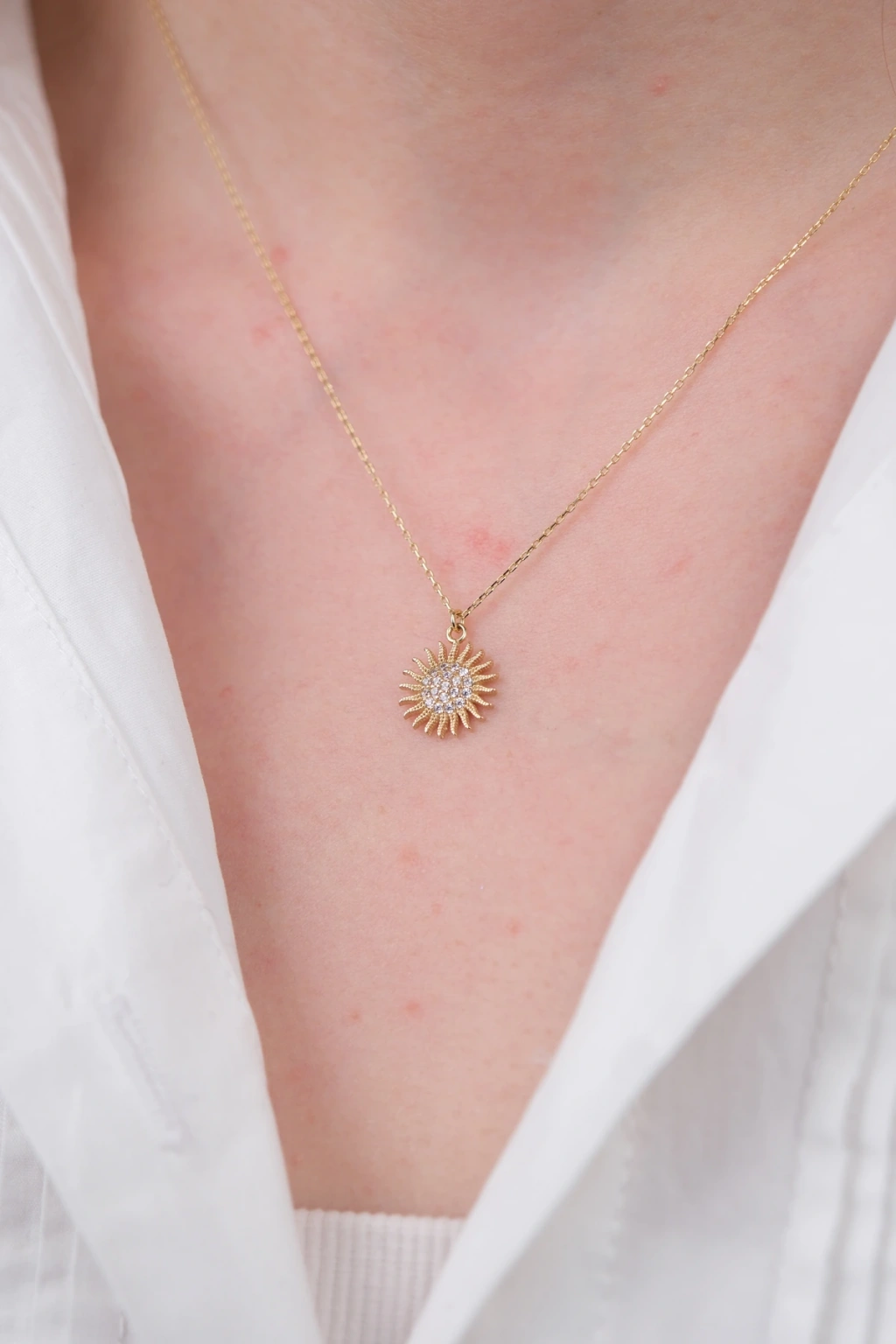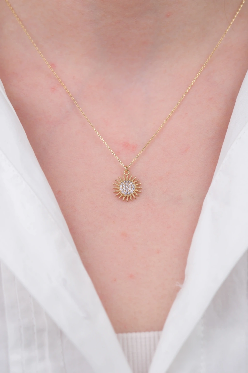 Ürün Tipi:14 Ayar Altın Taşlı Güneş Kolye 729
