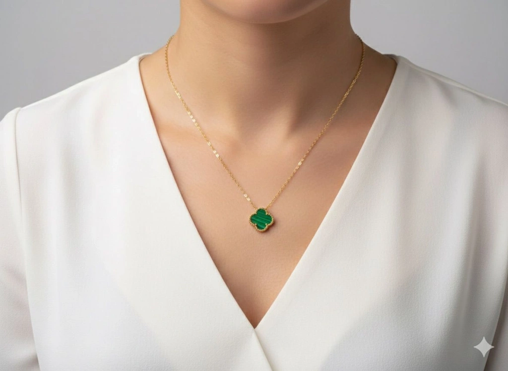 Ürün Tipi: 14 Ayar Altın Yeşil Yonca Kolye 690