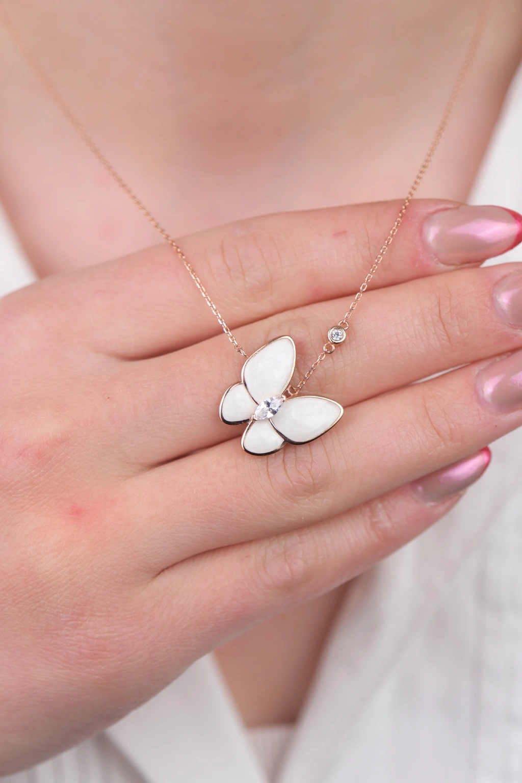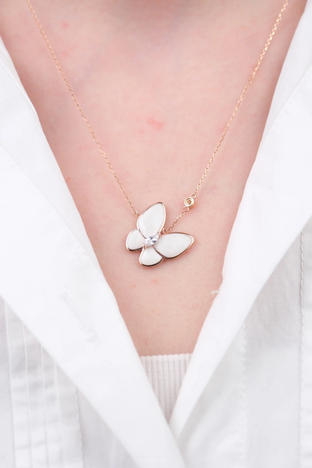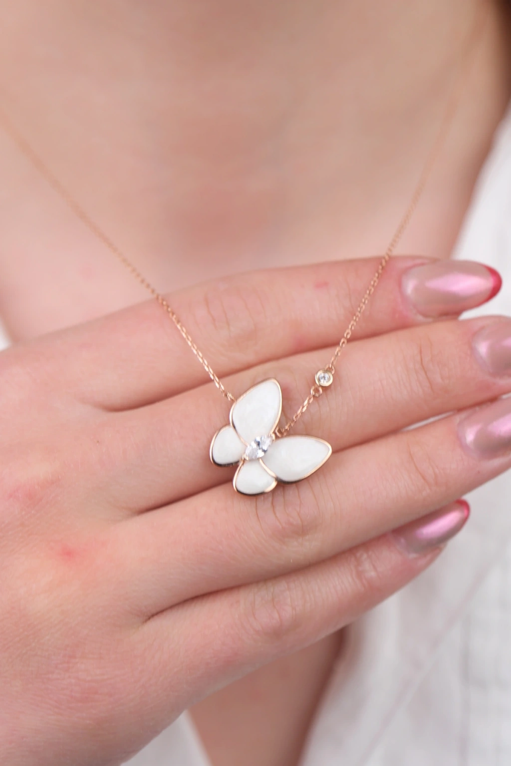Ürün Tipi:14 Ayar Altın Beyaz Kelebek Kolye 899
