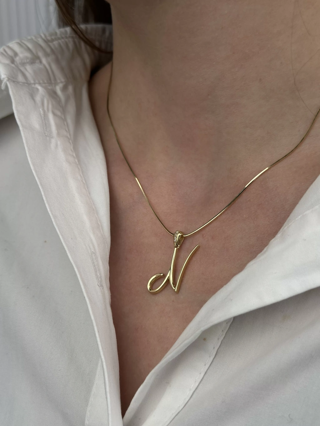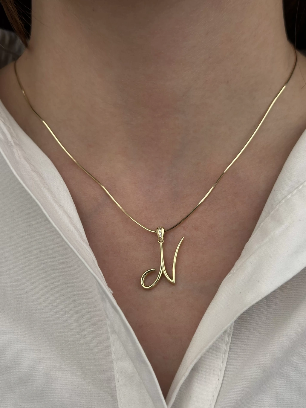 14 Ayar Altın N Harfi Kolye Ucu 437