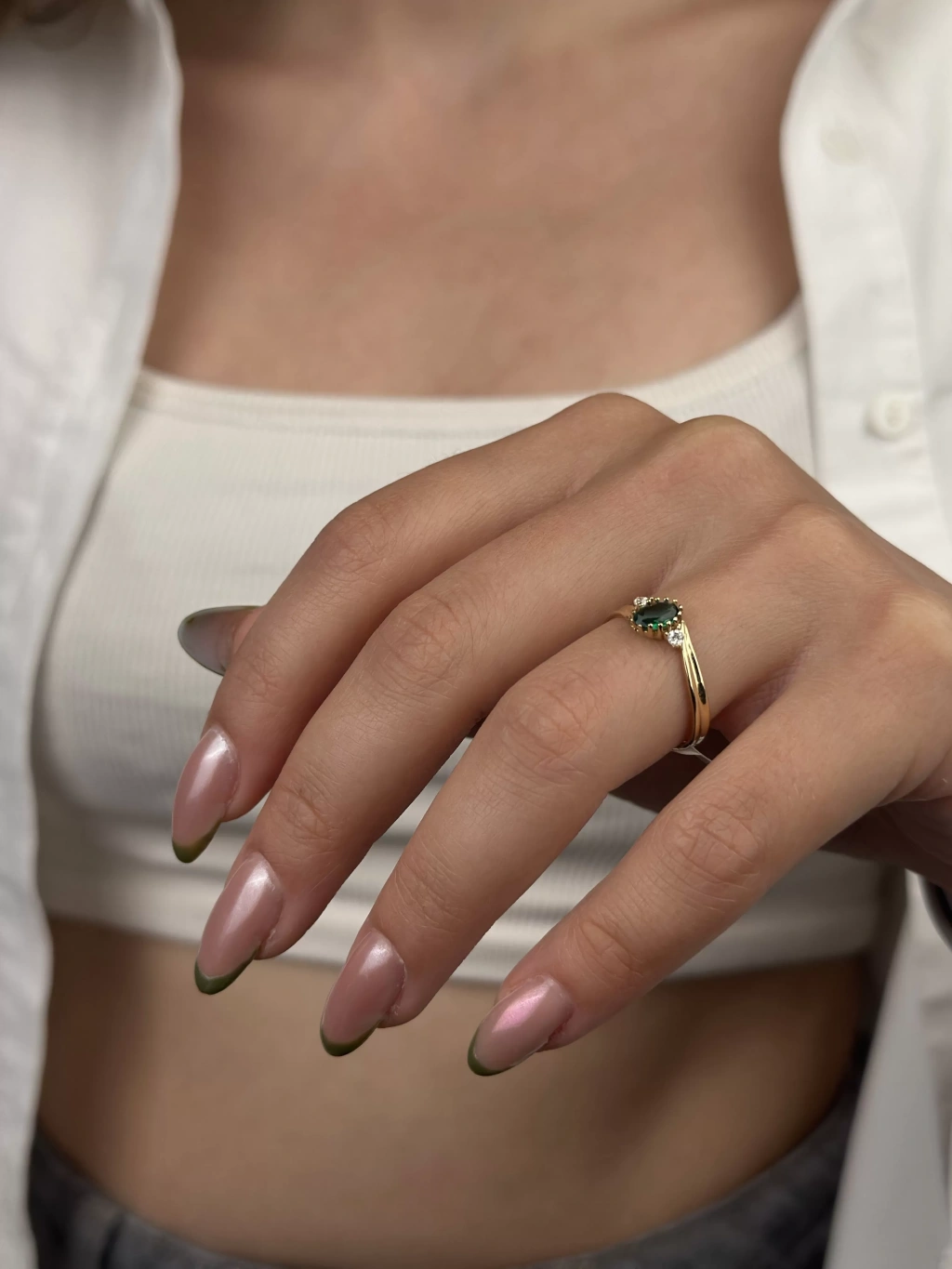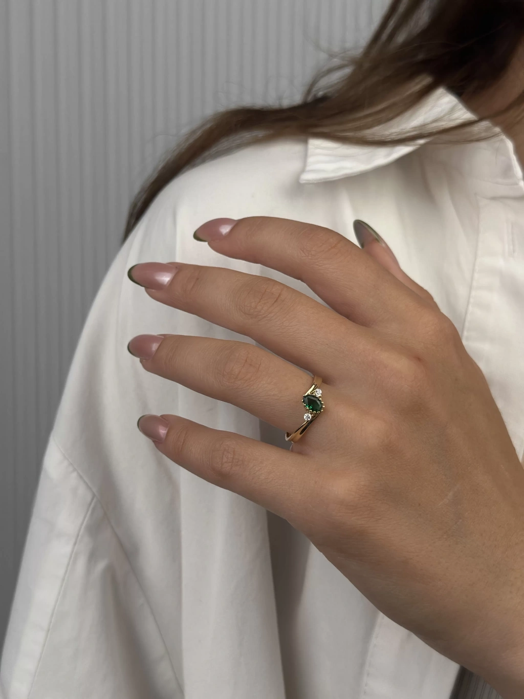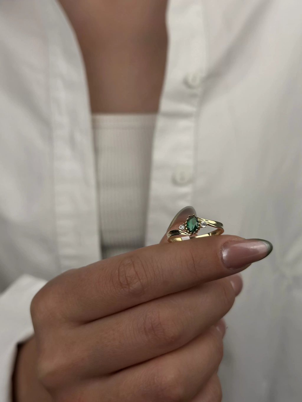 14 Ayar Altın Yeşil Taşlı Yüzük 972