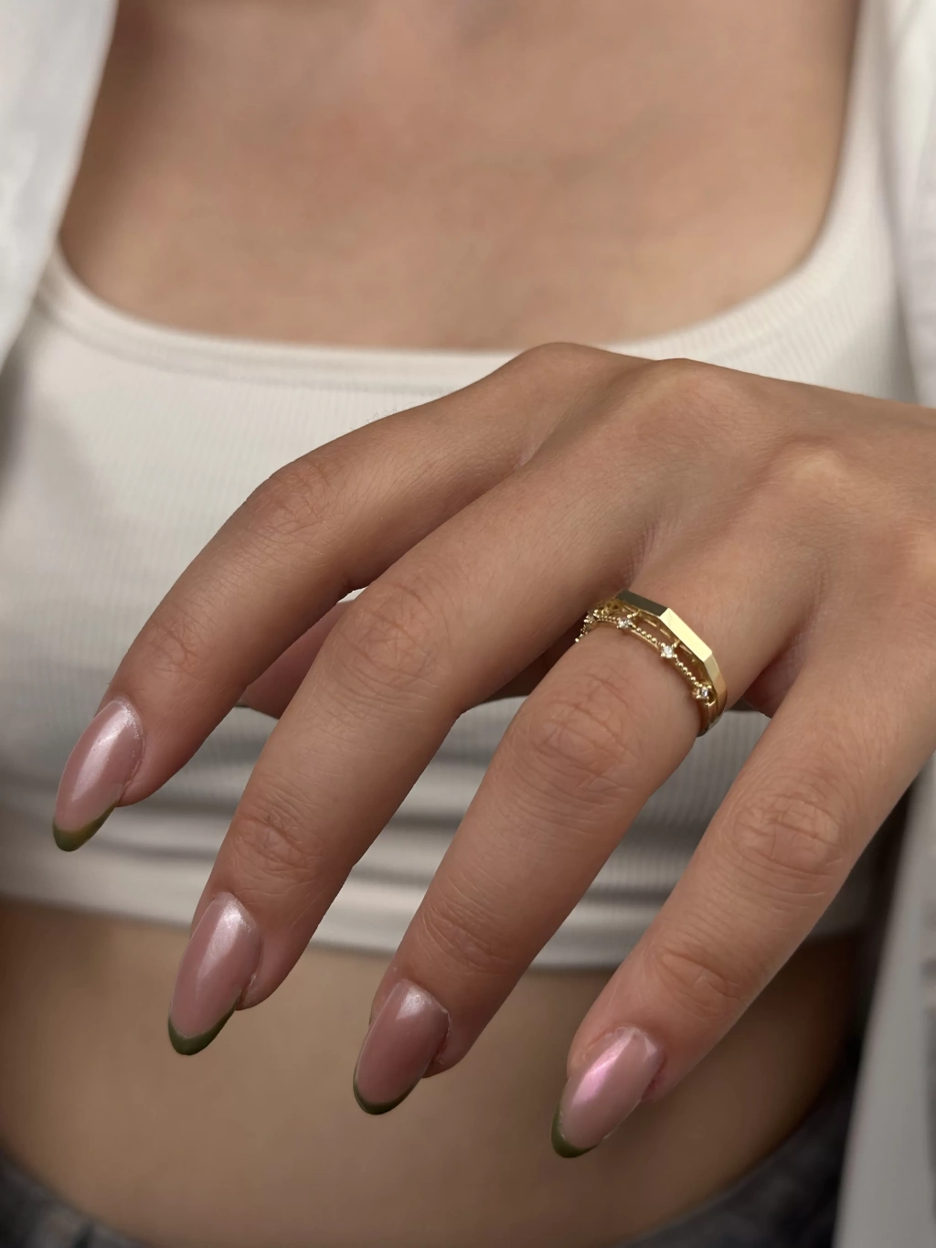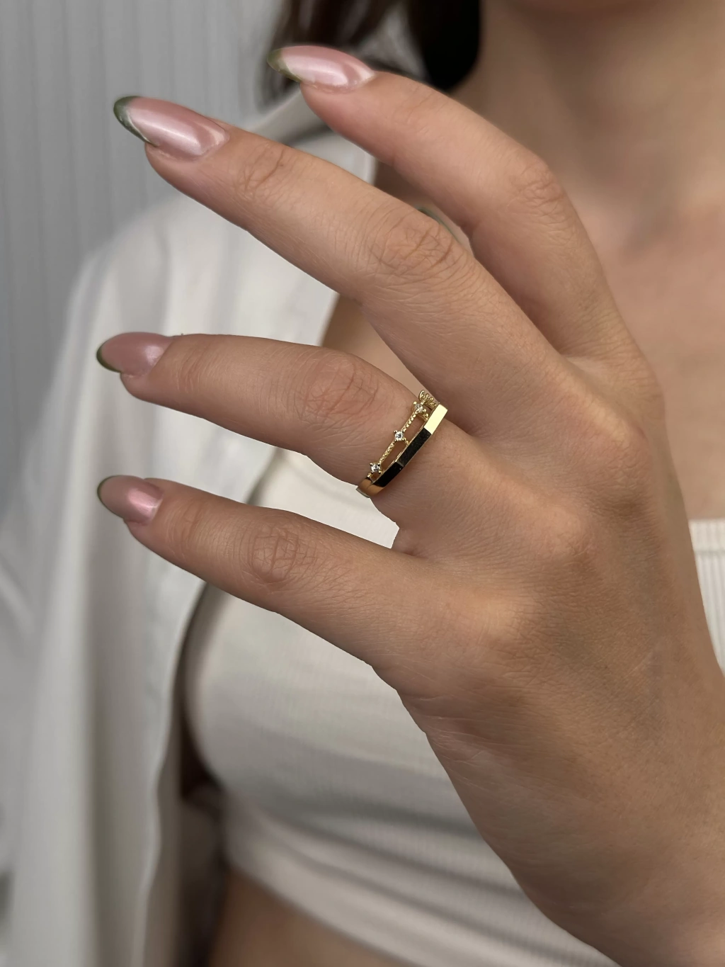 14 Ayar Altın 2 Sıralı Taşlı Yüzük 977