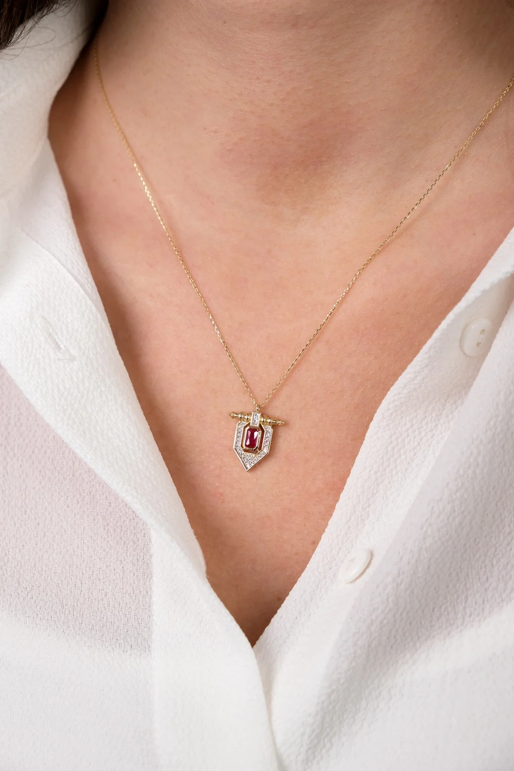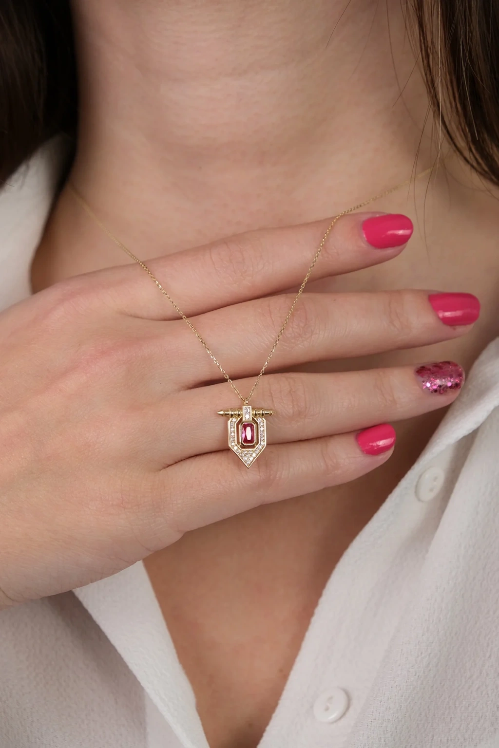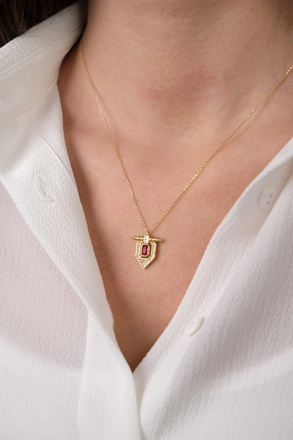 14 Ayar Altın Pembe Taşlı Kolye 64